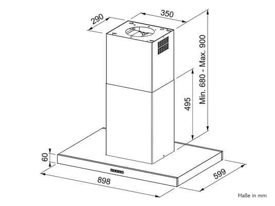 - Sicherheitsabstand zum Kochfeld: mind. 65 cm
