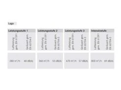 Luftstrom bei maximaler Geschwindigkeit im Normalbetrieb: 470,00 m³/h - Luftstrom im Betrieb auf der Intensivstufe/ Schnelllaufstufe: 800,00 m³/h