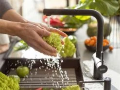 Noch mehr Komfort bei der Küchenarbeit bietet eine Armatur mit Brause. Per Knopfdruck lässt sich der Wasserstrahl zur Brause umstellen. Dies eignet sich Ideal zum Waschen von Salat oder zum Füllen von Töpfen.