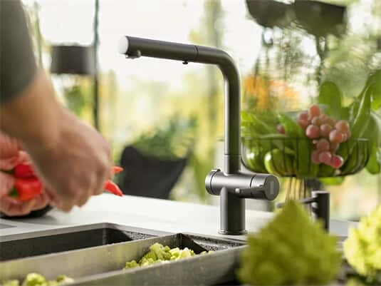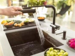 Franke bietet eine breite Auswahl farblich auf die Spüle abgestimmter Armaturen an. Oberflächen und Materialien aus Chrom, Edelstahl-Optik, hochwertigem massiv Edelstahl oder doch im Granit-Look lassen sich hervorragend mit der Spüle kombinieren. Matte Oberflächen oder auch Armaturen im metallischen Look werden zum Eyecatcher jeder Küche.