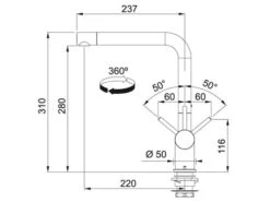- Großer Nutzungsradius durch hohen Auslauf und unbegrenztem Schwenkbereich