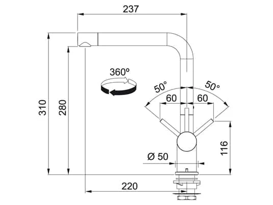 - Schwenkbereich der Armatur: 360°