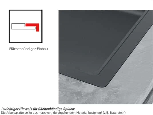 - Für den flächenbündigen Einbau, für massive Arbeitsplatten