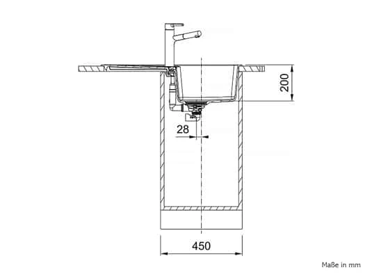 Bei der klassischen Einbau-Variante ist das Becken am Rand hochgewölbt. Die Wölbung verleiht der Spüle zusätzliche Stabilität. Die Spüle wird mit Klammern im Ausschnitt der Arbeitsplatte befestigt, die aus jedem beliebigen Material bestehen kann. Die Anmutung der Spüle passt besonders zum Küchendesign in klassischem Stil.“>
