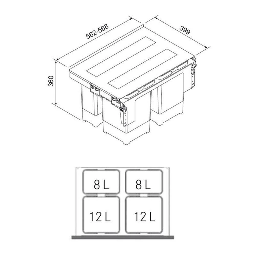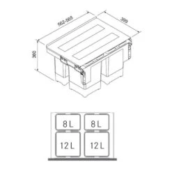 - Abfalltrennung 4-fach inkl. Behälter 2 x 8 L, 2 x 12