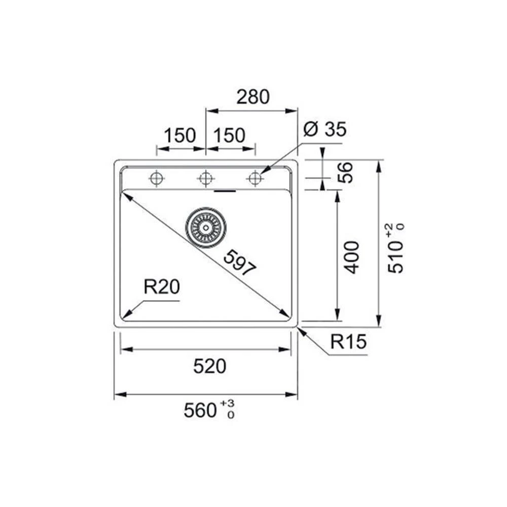 - Ausschnittmaße: B 540 x T 498 mm R=15 mm