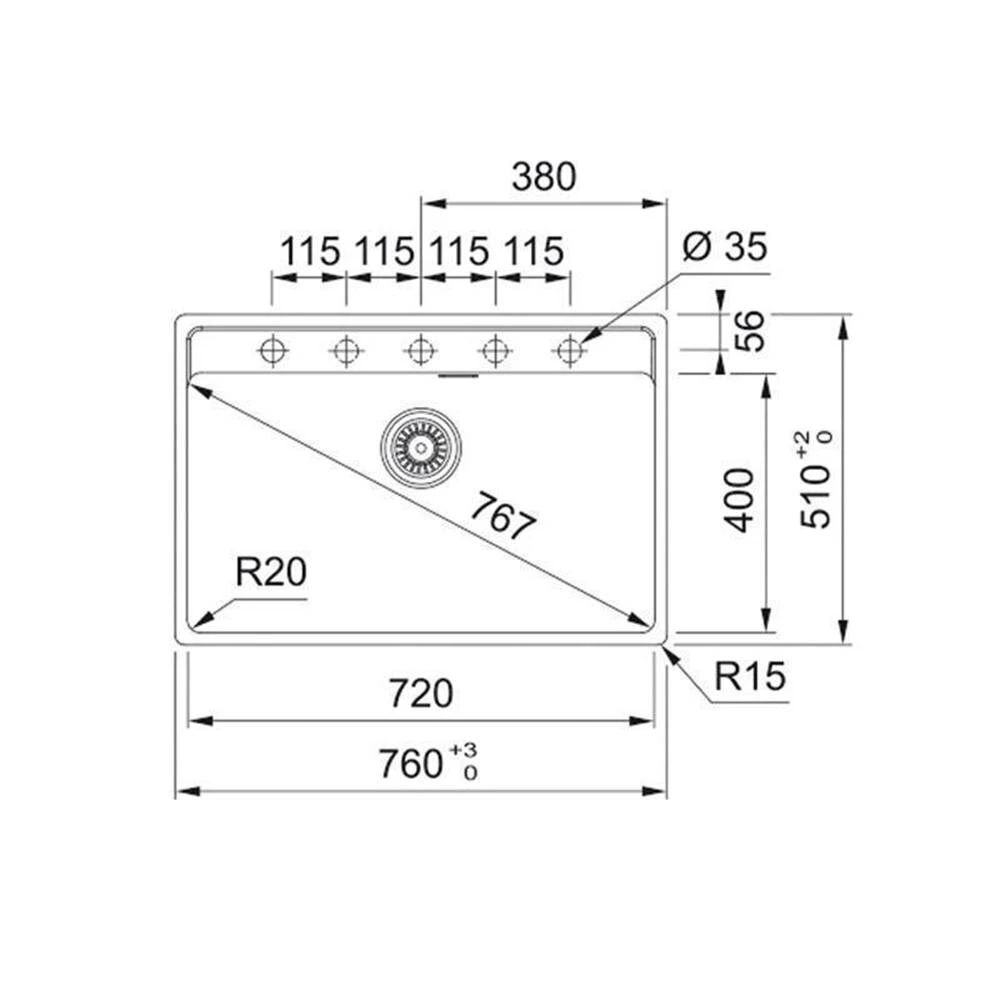 - Ausschnittmaße: B 740 x T 498 mm R=15 mm