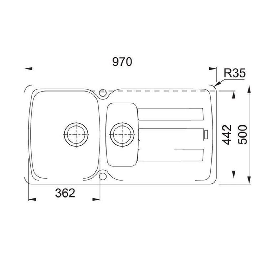 - Beckenabmessung: 362 x 442 x 210 mm und 115 x 310 x 115 mm
