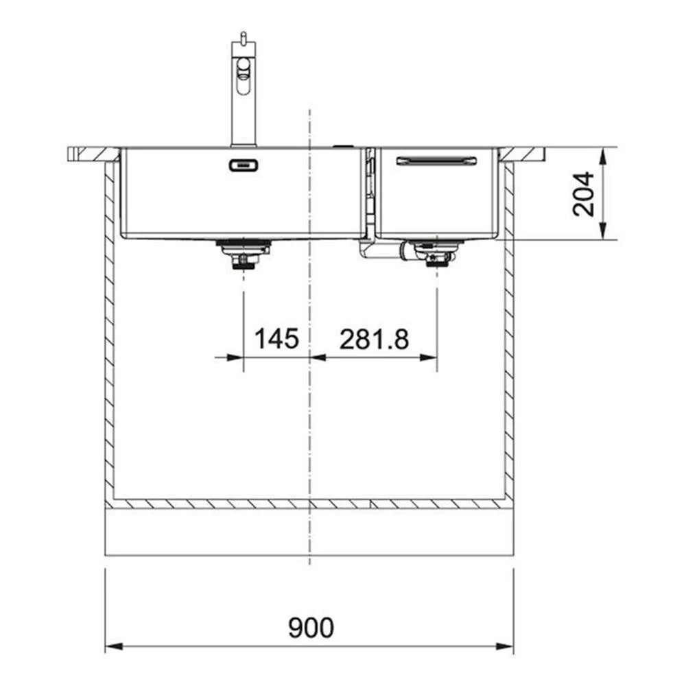 - Beckenabmessung: 540 x 410 x 200 mm / 270 x 480 x 200 mm