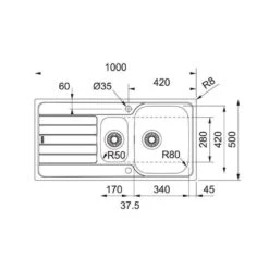 - Spülenmaß: B 1000 x T 500 mm