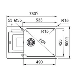 - Beckengröße: B 490 x T 425 x H 220 mm
