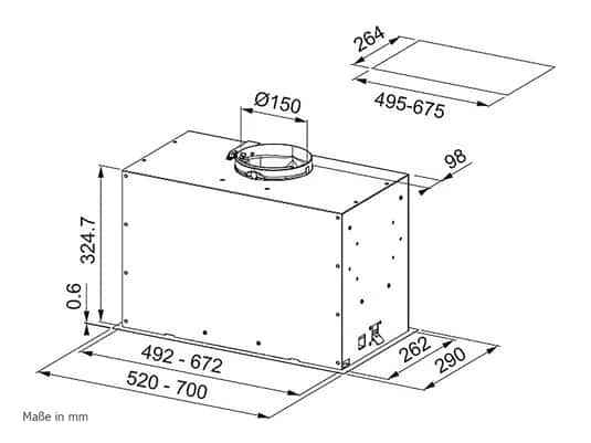 - Sicherheitsabstand zum Gaskochfeld: mind. 65 cm