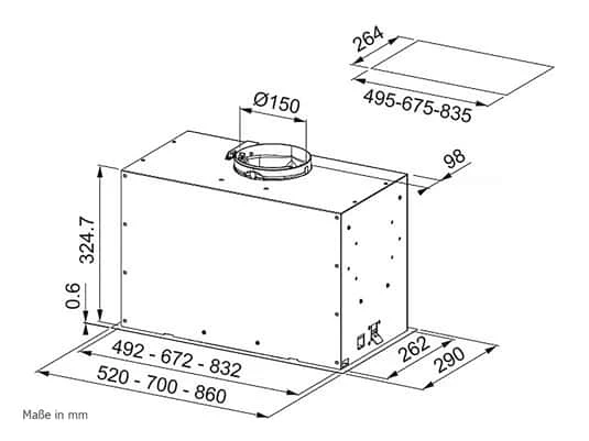 - Sicherheitsabstand zum Gaskochfeld: mind. 53 cm