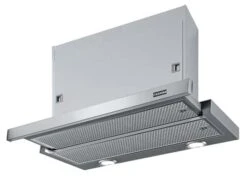 Die Luft sowie die enthaltene Luftfeuchtigkeit (Kochdunst) wird angesaugt und durch einen Fettfilter nach draußen befördert.“>