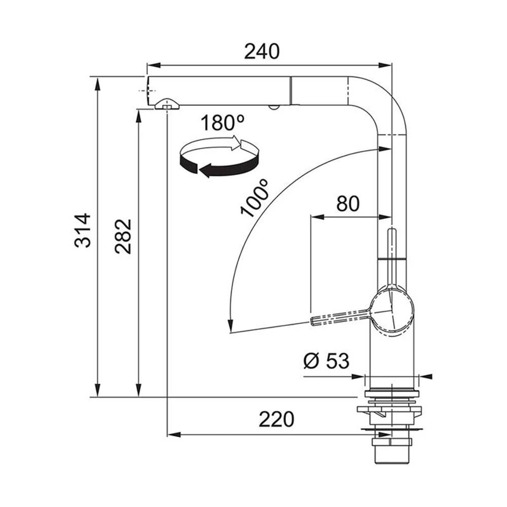Franke Küchenarmatur Active L Window mit Auszugsbrause umstellbar Hochdruck Oberfläche chrom