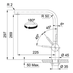 - Dank des 0-90 Grad Bediengriffes ist eine wandnahe Montage möglich