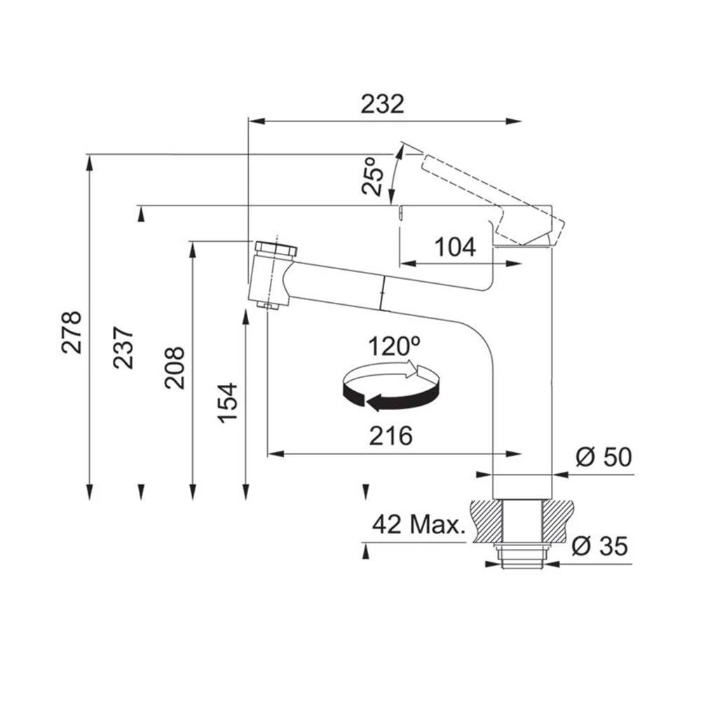- Auslaufmenge Normalstrahl: 8 L pro min. (3 bar)