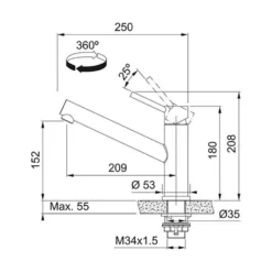 - Hahnlochbohrung mit Durchmesser 35 mm erforderlich