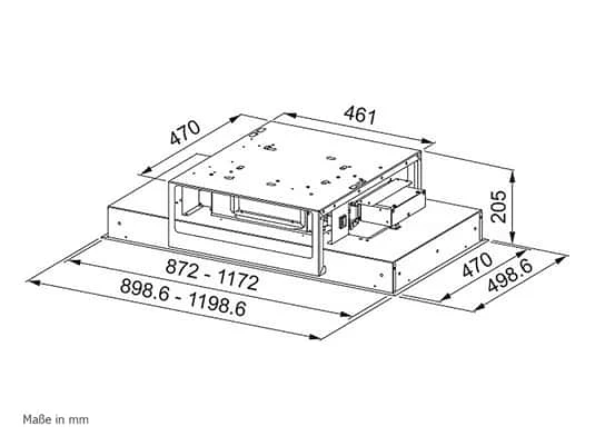 - Sicherheitsabstand zum Kochfeld: mind. 65 cm