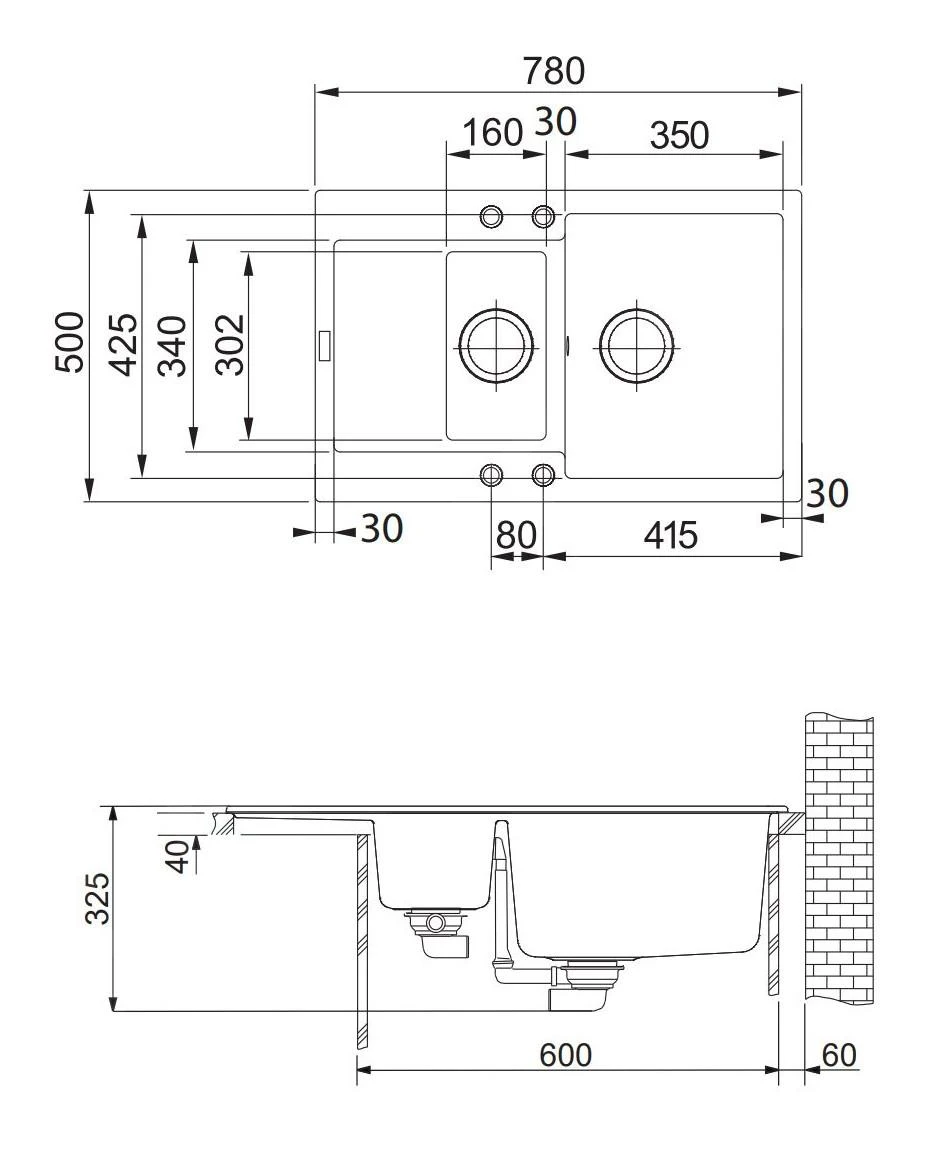 - Abtropffläche variabel, kann links oder rechts orientiert werden