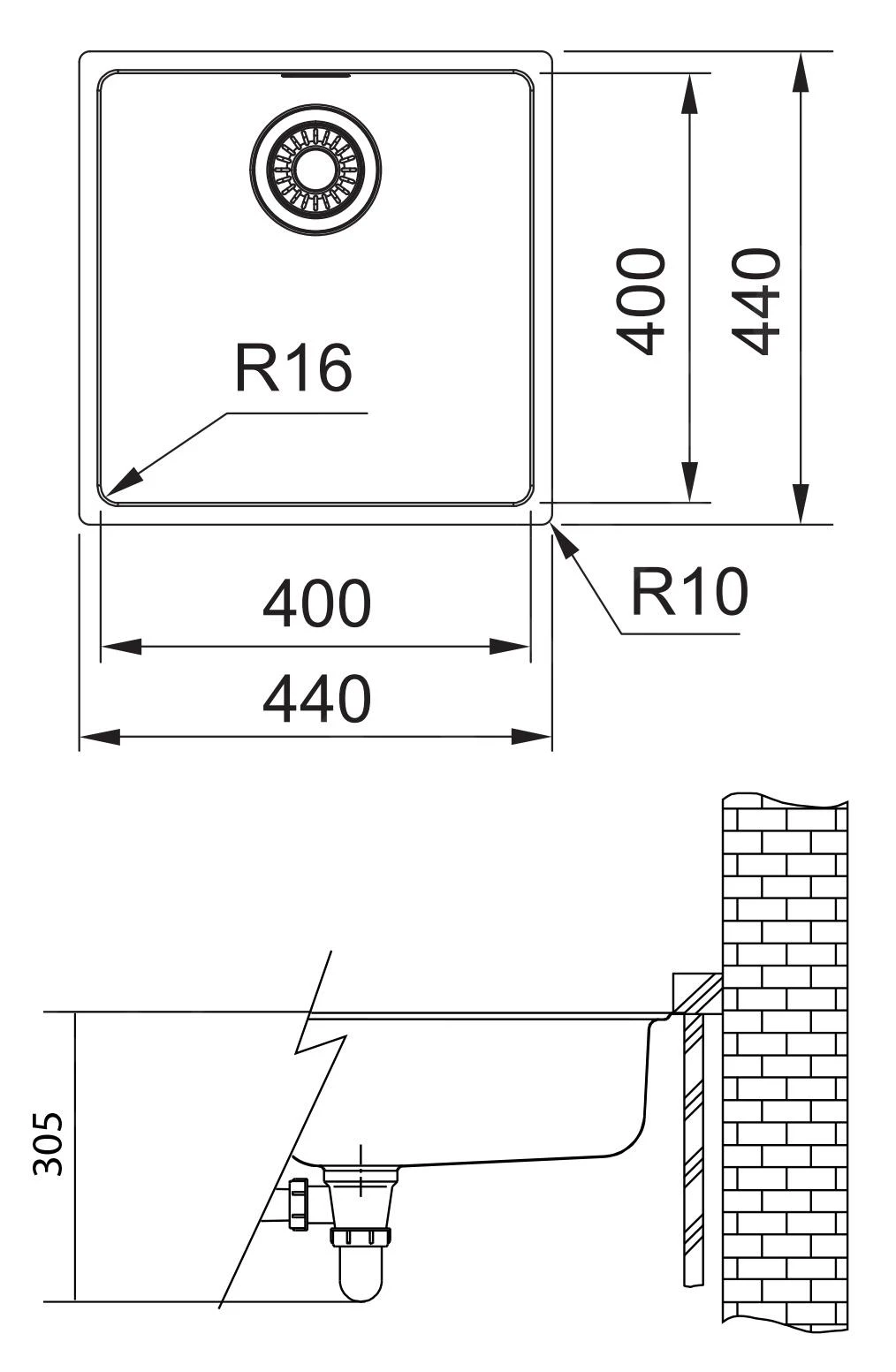 - Spülbecken 400 x 400 x 180 mm