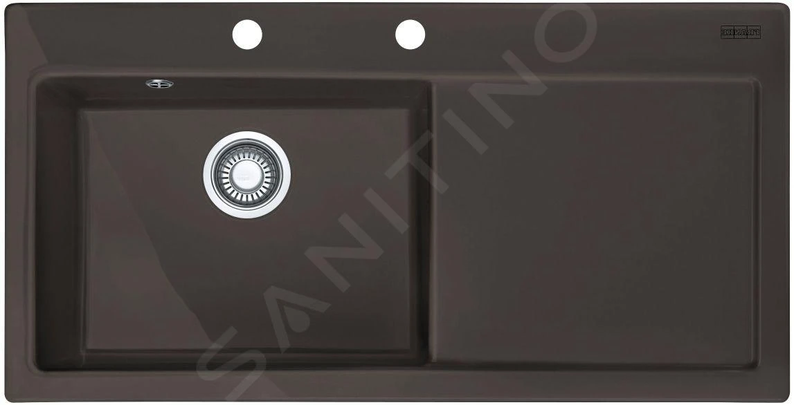 Das Spülbecken hat bereits zwei werksseitige Löcher. Wegen des Herstellungsprozesses der Keramikspülen haben diese Abmessungen mit einer größeren Toleranz und können von den in den technischen Skizzen angeführten Abmessungen um +/- 1% abweichen.