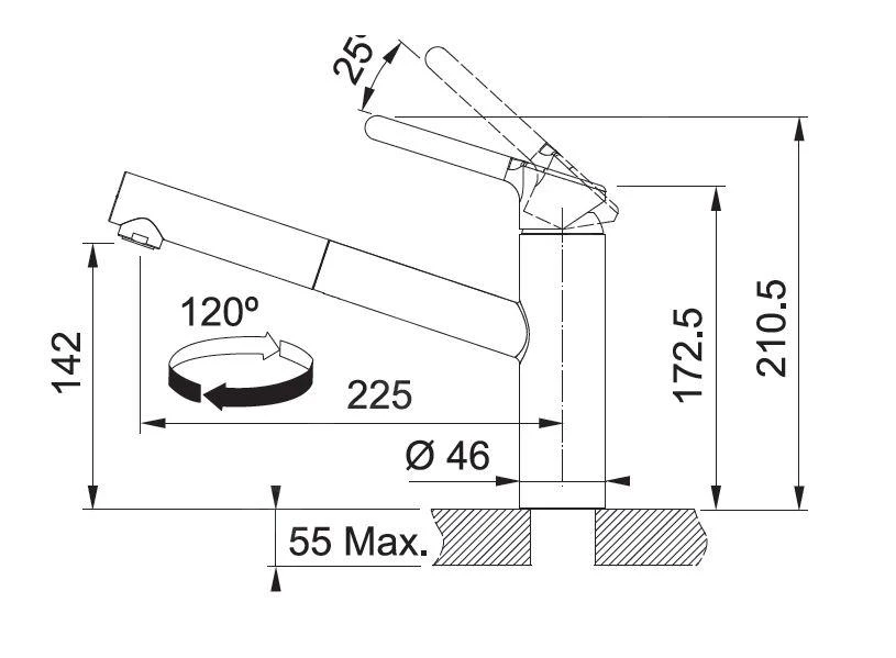 - 2 Positionen des Hebels – 50% Wassereinsparung