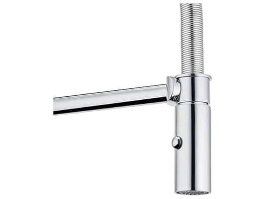 Neben den Vorteilen einer Semi-Professionellen Armatur bietet die Brausefunktion die Umschaltung auf den Brausestrahl.“>