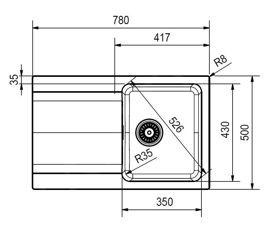 - ohne Armaturloch (das Loch kann mit einer Lochsäge direkt bei der Montage gebohrt werden)