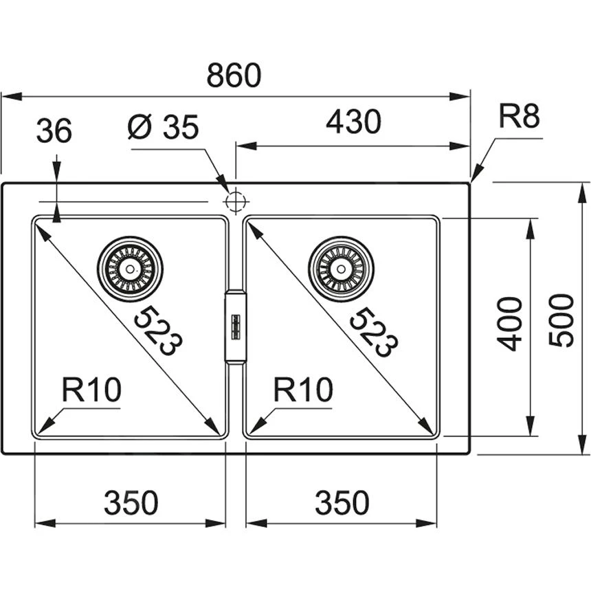 - Ausschnitt 844 x 484 mm (Radius 20 mm)
