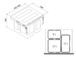 - Abfallvolumen: 32 Liter (2 x 12 Liter, 1 x 8 Liter)