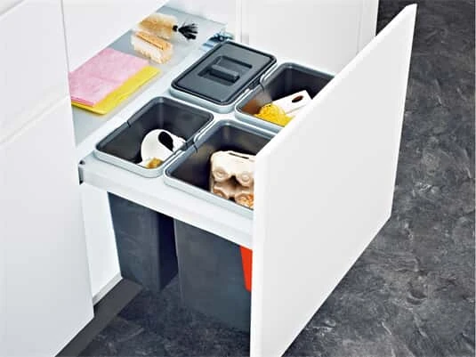 - Abfallvolumen: 40 Liter (2 x 12 Liter, 2 x 8 Liter)