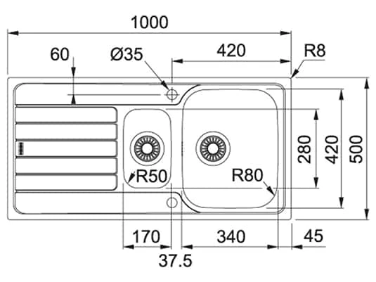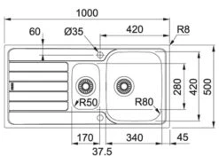 Franke Spark: Modernes Design mit pflegeleichtem 80 mm Becken-Eckradius.
