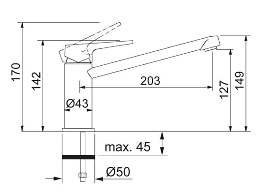 Armatur Tico: Klassisches Design mit niedriger Bauhöhe.