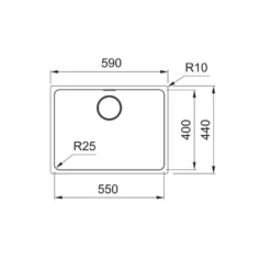 - Ausschnittmaße: B 550 x T 400 mm R25