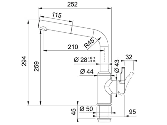Verfügbare Schlauchlänge von Unterkante der Armatur bis zu den Anschlüssen.“ src=““ data-src=“//value.moebelplus.de/features/franke_schlauchlaenge.gif“ alt=“Schlauchlänge 450 mm