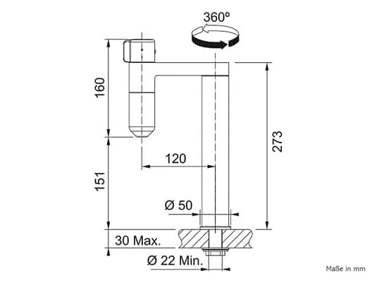 gefiltertes Wasser: 3,5 l/min. (3 bar) - ACHTUNG: Die Armatur muss bei der Installation, bevor der Filter